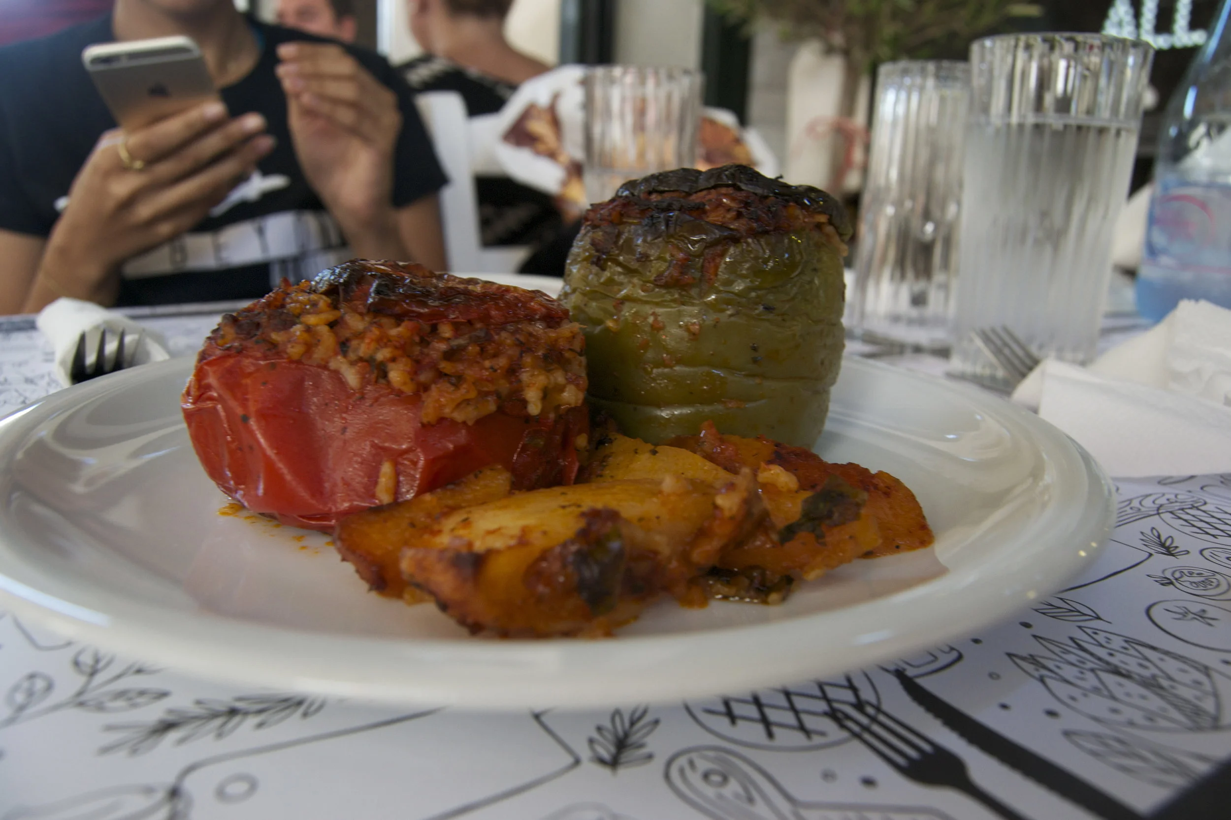 Grilled stuffed peppers from All That Jatz. Athens, Greece